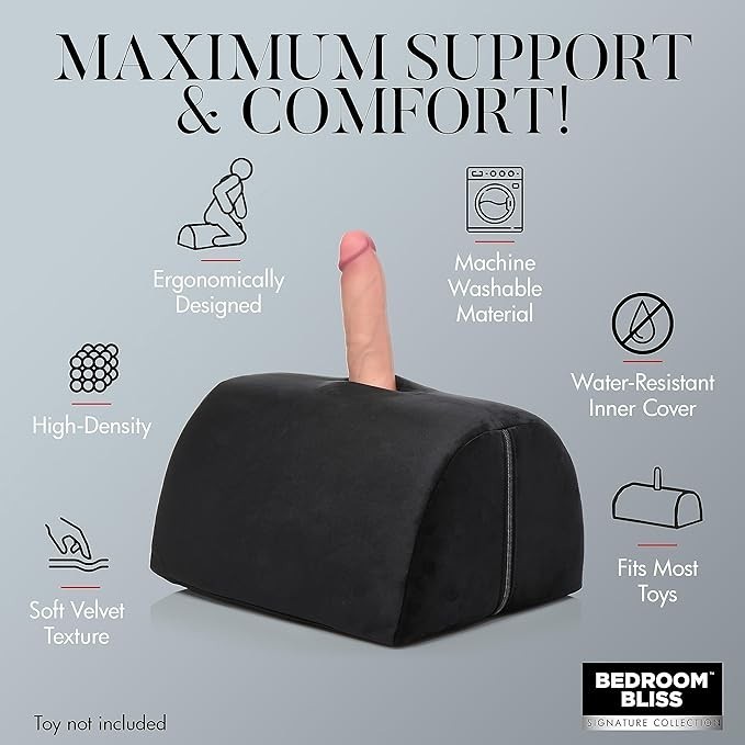 Bedroom Bliss Love Toy Cushion for Men, Women & Couples. Great for Sexual Positioning & Deep Penetration, Saddle-Style Mount with Toy Pocket. High-Density Foam. Easy to Clean Covers. 1 Piece, Black