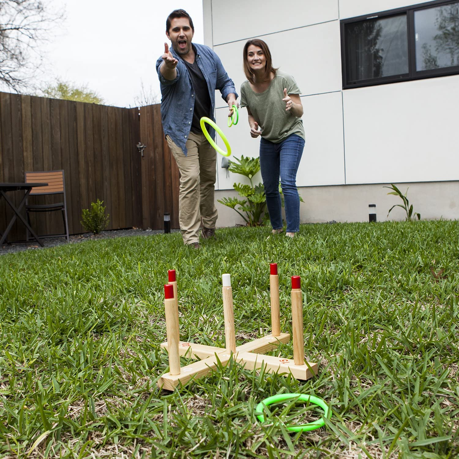 DURABLE WOODEN CONSTRUCTION: Designed for ultimate durability, this long lasting ring toss set is made from solid wood, ensuring it will withstand regular outdoor use on camping trips, during backyard barbecues or on the playground