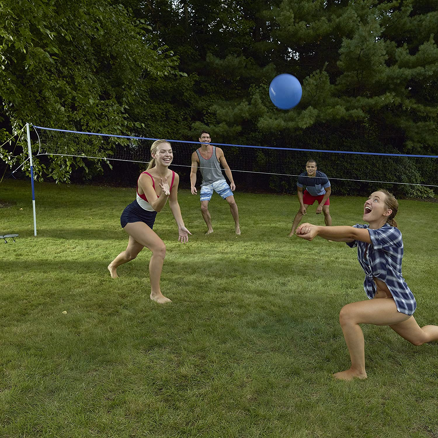 BACKYARD OR BEACH FUN begins with this complete Badminton or Volleyball set